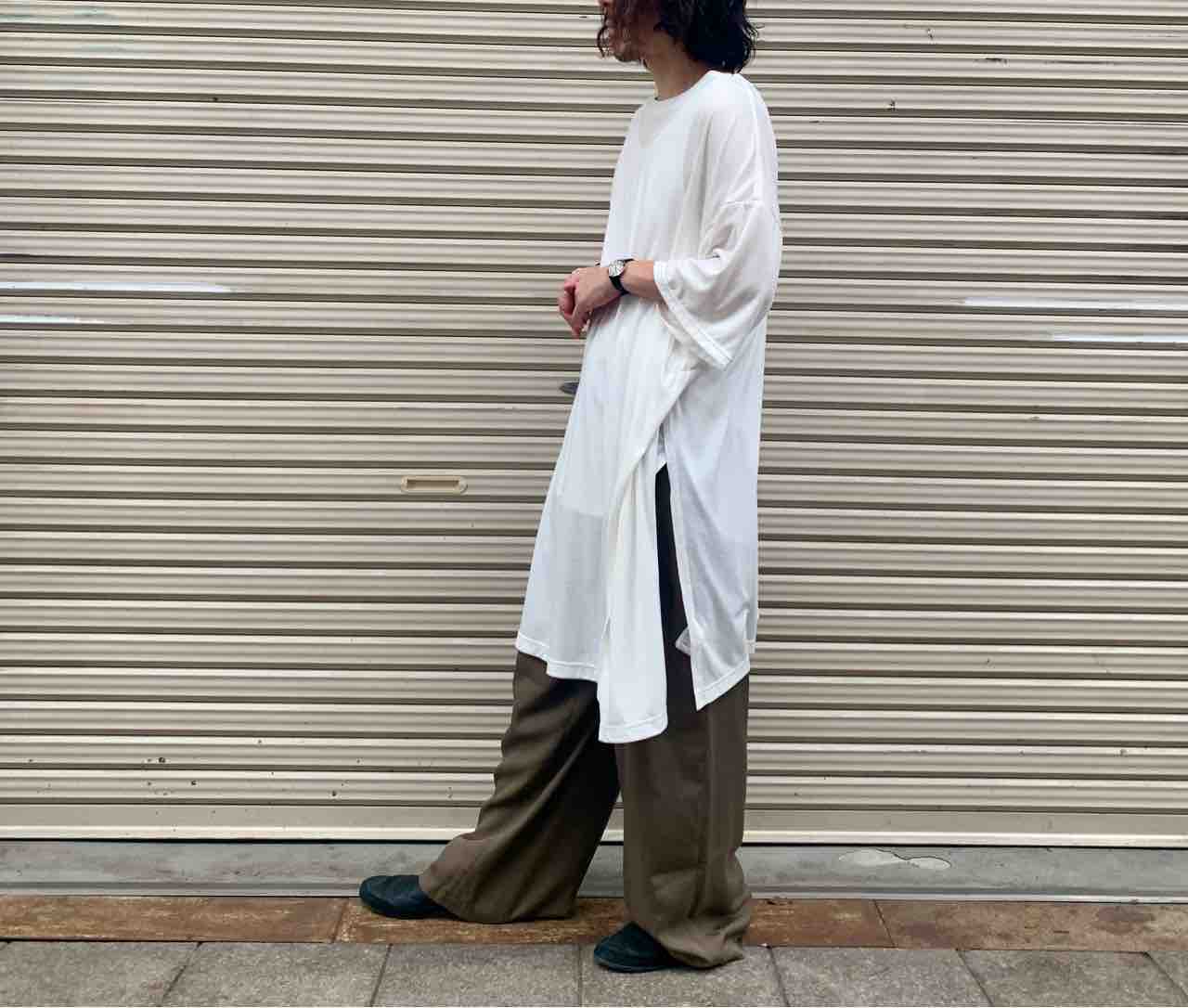 スタイリングではカットソー1枚で見せておりますが、ジャケットやプルオーバーを重ねてレイヤードのアクセントとしてもオススメ。