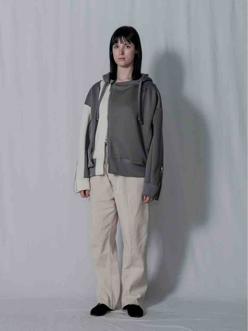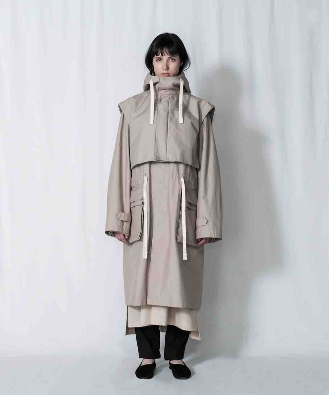 レイヤードスタイルを中心に多素材のドッキング、製品染め、などの手法を使ったアイテムやニットを展開。アレンジや組み合わせのバリエーションで見せ方やスタイルに変化を加えていけるアイテム作りをしている。